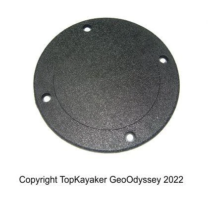 Best used to cover over 4 inch hole (up to a 4.5 inch hole). Called the 5 5/8 inch Inspection Plate. Color is Black. Screw holes are 4.75 inches on center. Can be used ad a Hatch Patch. This may be the best option for the discontinued Ocean Kayak Prowler rudder cover plate, for the stern access, that was included with the discontinued Prowler 13 Rudder Kit (07.1970.0000). This plate is molded with 4 screw holes. You can drill more holes to match the 8 hole patter as seen in the Prowler 13 Rudder Kit Instructions.