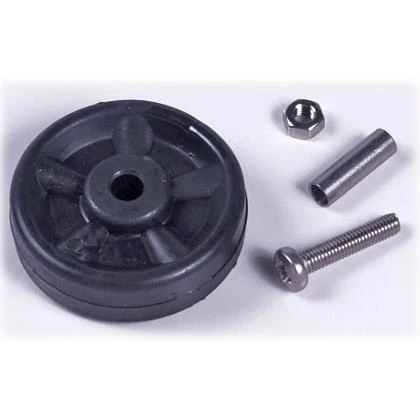 A replacement parts pack for a damaged Bic kayak wheel. Yes, the innovative Bic kayak wheel can be get jammed with gravel and stop turning, leaving a flat spot on the wheel. This it the kit to fix it! Parts included are 1 wheel (2.25 in.), 1 axle, 1 bolt and 1 nut. Easy to remove and install. Fits Bic kayaks outfitted with this wheel; Yakka, Bilbao and Tobago. Other Bic Sport parts and supplies are available by special order.