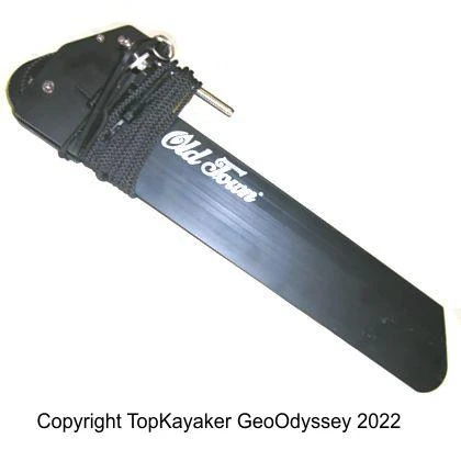 New Old Stock from a kayak pro shop hoard. This is a long pin rudder assembly for older Old Town kayaks, made circa year 2000. Pin is 3.25 inches long and needs 1/4 inch exposed for the Rudder Pin Ring (not included). Pin is metric just a hair less than 3/8 inch diameter. Best Used Only for Old Kayaks! Comes with a 3/16 dia. lifting rope of unknown length. Blade is approximately 19 inches long, 3.5 inches wide. Not a Full Kit! Rudder Assembly Only. LPRDR