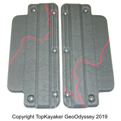 Thigh Pads for Dagger recreational kayaks with Contour Outfitting. Best used to add or replace knee-thigh pads to the cockpit rim of ANY sit-in recreational kayak. (Use on the plain cockpit rim. Not for kayaks with integrated thigh braces). Made specifically for Wilderness Systems, Perception and Dagger brand kayaks. This set can be used to add pads to almost all brands of sit-in-side recreational kayaks. Two pads 16 inches long. These pads have a print pattern that looks like a topo map, same as the charcoal Zone Thigh Pads and gray Tribute Thigh Pad Kit.