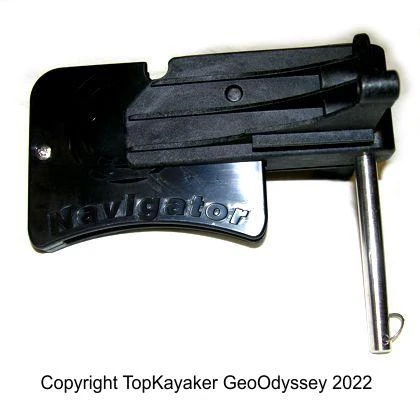 Best used a replacement part. This Kajak Sport Navigator Rudder Body is a Long Pin Modern Version. Rudder parts included; Head, Pin, Ring and Rocker. Works with the Modern Plastic Version Blade.