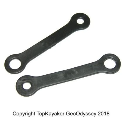 Tether is 3 and 3/8 inches long, each with a large hole on one end and a smaller hole on the other end. Made of Rubber. Comes as a two pack. OUTKNOB