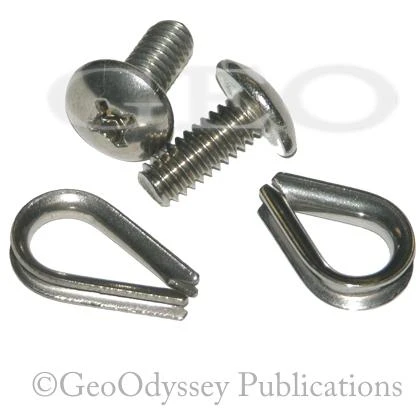 Use this kit to fasten control cables to your Werner, or Yakima, foot brace control rails on your kayak’s rudder system. Kit includes two stainless thimbles and two 3/4 inch screws to secure cables to rails. Only for use with Mohawk, Yakima and Werner foot rails, tapped with 1/4-20 threaded screw holes. Formerly WNR-003-KIT. Can be used as OK part number 300110 when applying steel cables to a Scupper Pro made by Ocean kayak. An instruction page is included with this kit.