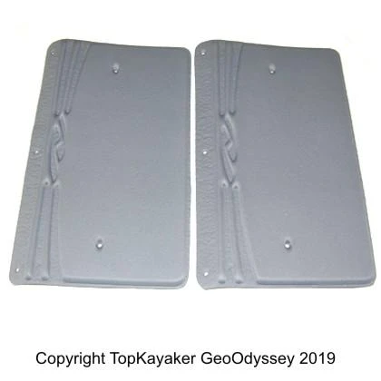 A Pair of Replacement Thigh Pads for the Necky recreational Rip. Can also be used as a replacement pads for an Old Town kayak, such as the Heron XT, circa 2012 or so. Thigh Pad is 14 x 8.5 inches (left and right are same 07.2000.0558 ). Secures with six Panel Fasteners (01.1315.3590) aka LONG Push Rivets (9800255), four 3/8 inch Screws (07.2794.0000), four Tee Nuts (07.2812.0000) and four 1/4-20 Bound Washers (07.2118.0000). These hardware bits are NOT included. Re-use what you can, expect to get new Push Rivets. NECKOUT OLDOUT thighbraces