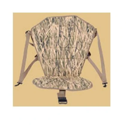 New Old Stock! Camouflage seat for a NuCanoe brand boat, circa 2011. Matches the camo duck blind cover common at that time. Seat back is 17 inches high. Secures to sides with metal clips (like a dog leash) and a bottom strap.