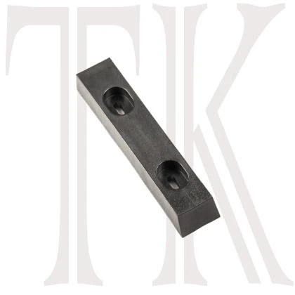 Skid plate is 6 inches long (chisel end!), 1 1/8 inches wide, ¾ inches deep. Two Screw Holes, 3 inches on center. Kit comes with 3/4 inch 10-32 truss head screws and lock washers, all stainless steel. (Version A Skid Plate is also known as the Tribe – Commander Skid Plate.)